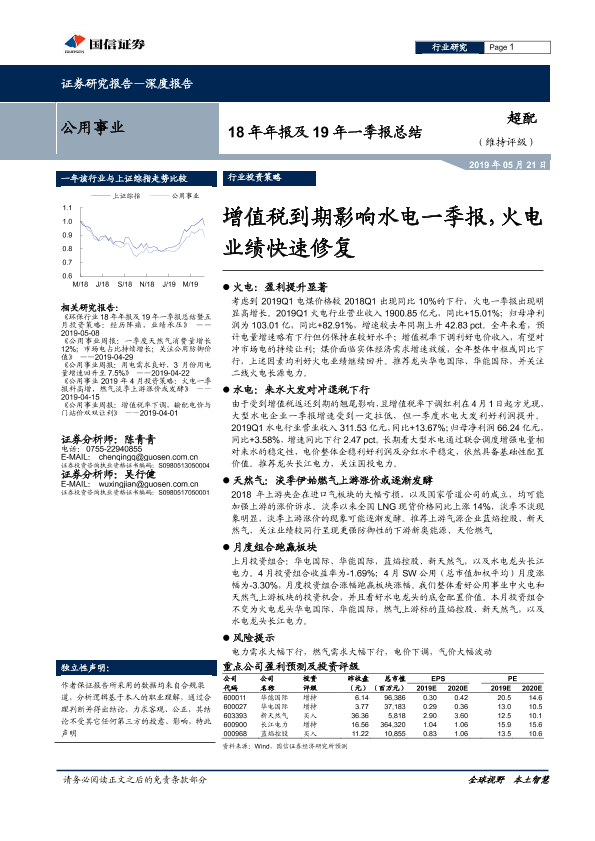 【国信证券】【20190521】公用事业18年年报及19年一季报总结-21页