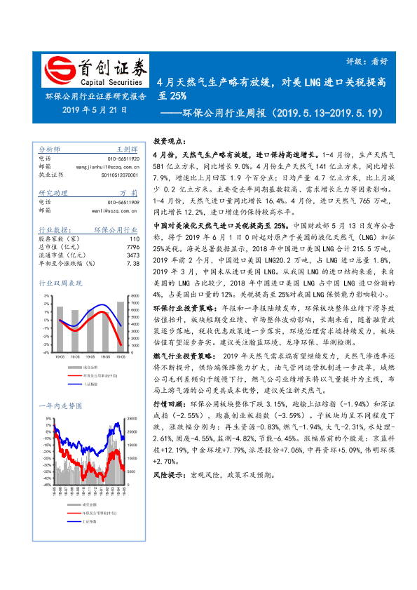 【首创证券】【20190521】4月天然气生产略有放缓,对美LNG进口关税提高至25%-11页