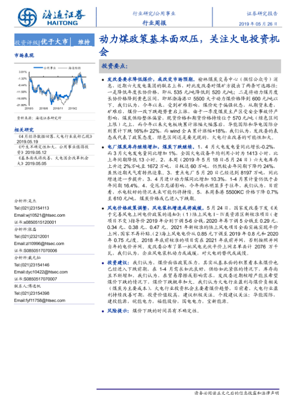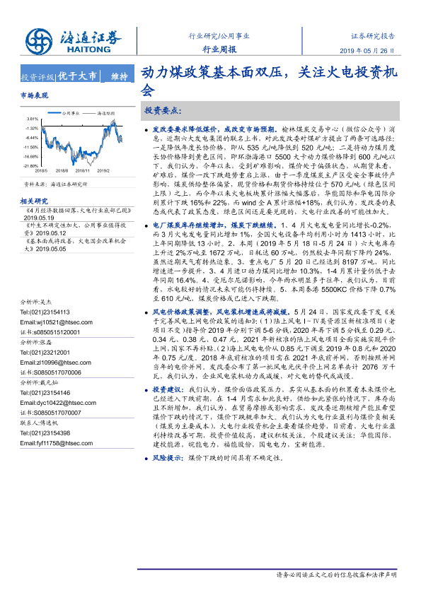 【海通证券】【20190526】公用事业行业周报:动力煤政策基本面双压,关注火电投资机会-2页
