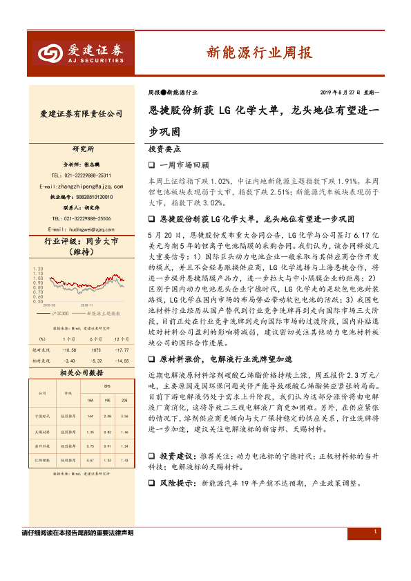 【爱建证券】【20190527】新能源行业周报:恩捷股份斩获LG化学大单,龙头地位有望进一步巩固-14页