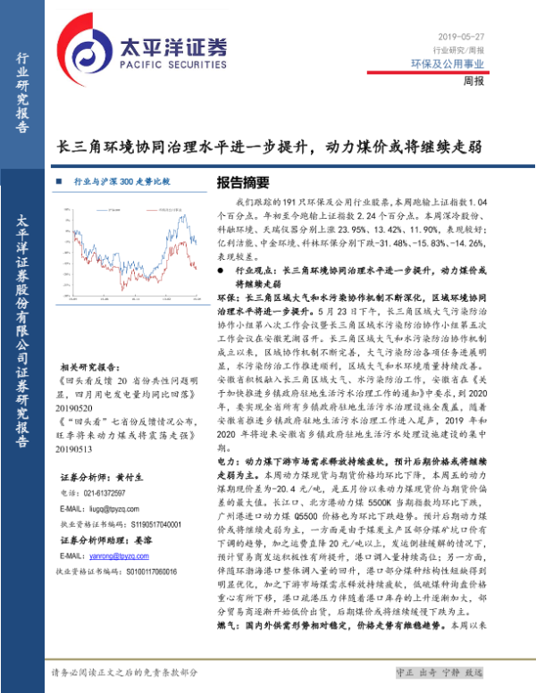【太平洋证券】【20190527】长三角环境协同治理水平进一步提升,动力煤价或将继续走弱-14页