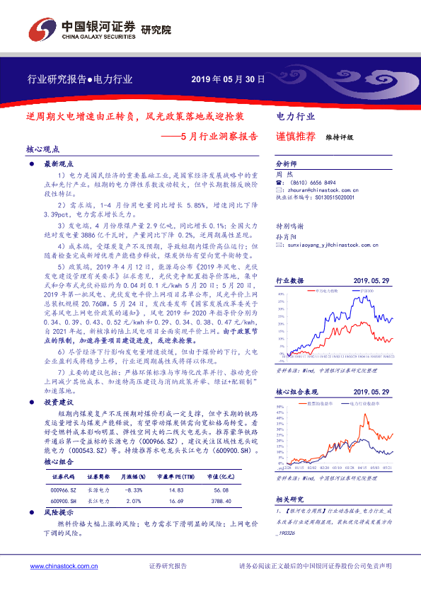 【银河证券】【20190530】电力行业5月行业洞察报告:逆周期火电增速由正转负,风光政策落地或迎抢装-27页