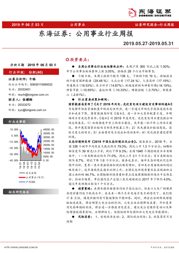 【东海证券】【20190603】公用事业行业周报-6页