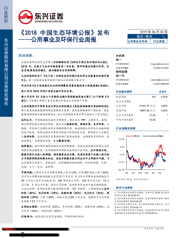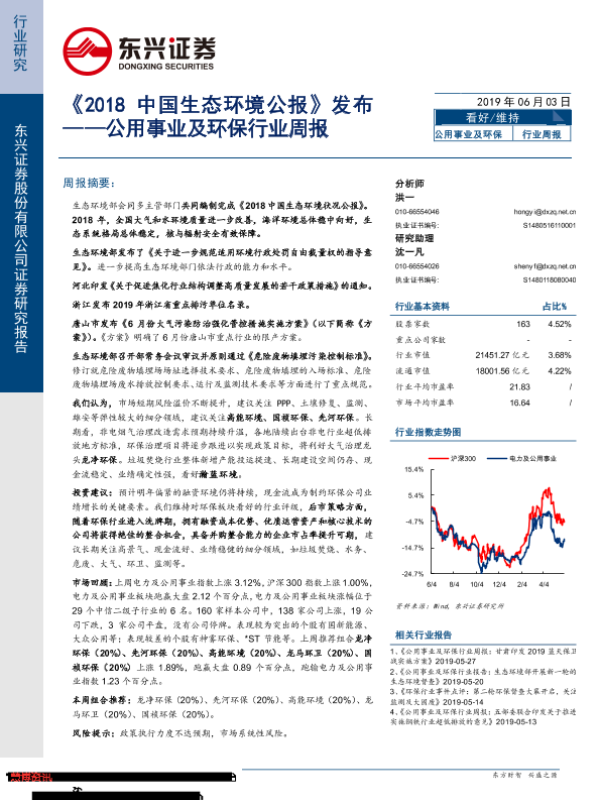 【东兴证券】【20190603】2018中国生态环境公报发布——公用事业及环保行业周报-7页