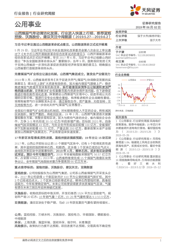【天风证券】【20190602】公用事业研究周报:山西煤层气带动清洁化发展,行业进入快速上行期-13页