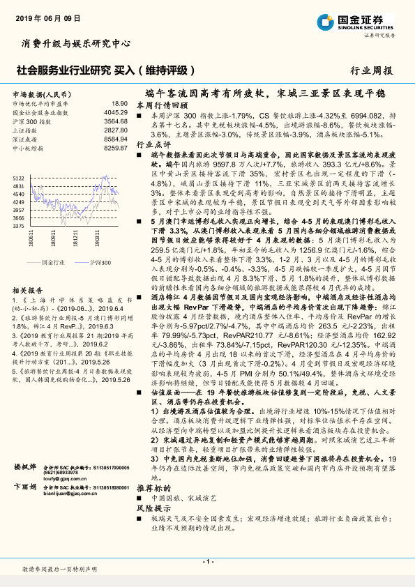 【国金证券】【20190609】社会服务业行业周报:端午客流因高考有所疲软,宋城三亚景区表现平稳-10页