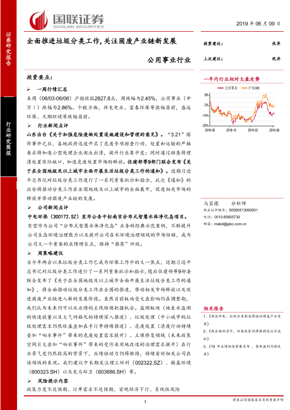 【国联证券】【20190609】全面推进垃圾分类工作,关注固废产业链新发展-12页