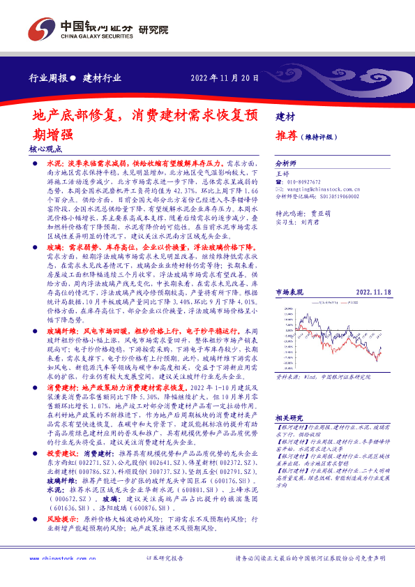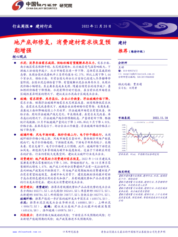 【银河证券】【20221120】建材行业周报:地产底部修复,消费建材需求恢复预期增强-16页
