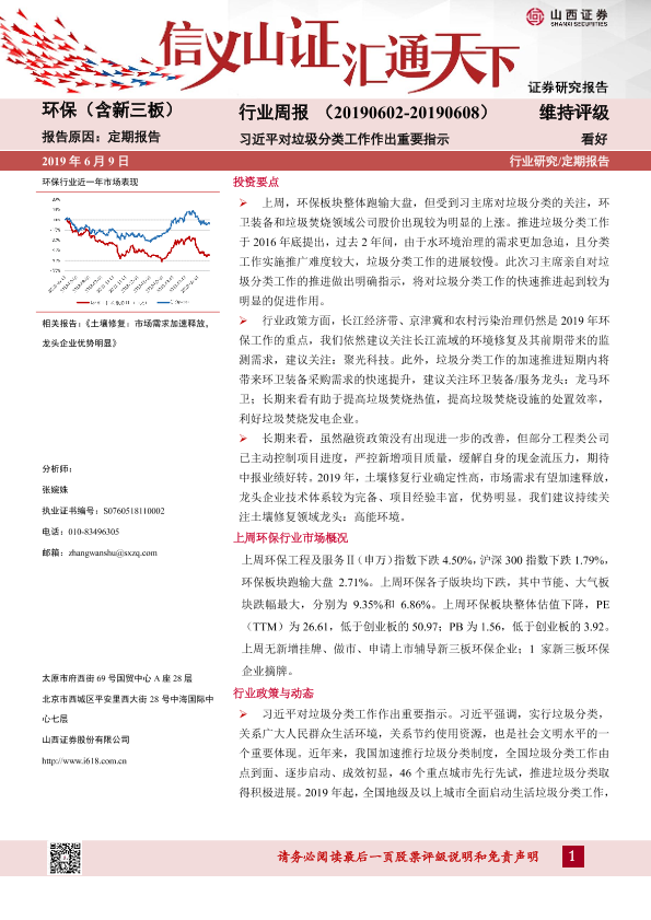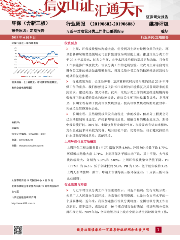 【山西证券】【20190609】环保(含新三板)行业周报:习近平对垃圾分类工作作出重要指示-11页