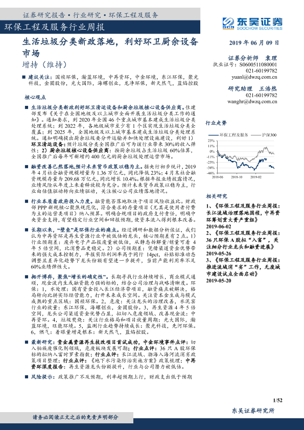 【东吴证券】【20190609】环保工程及服务行业周报:生活垃圾分类新政落地,利好环卫厨余设备市场-52页