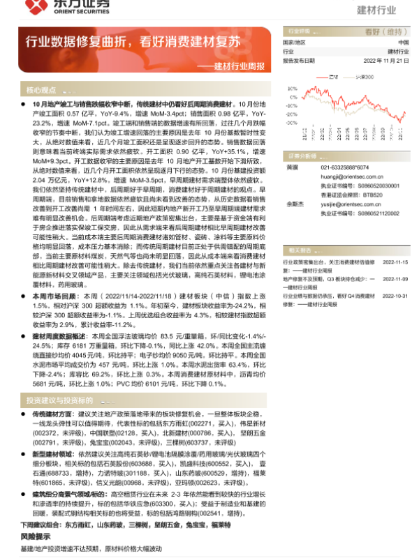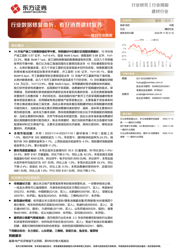【东方证券】【20221121】建材行业周报:行业数据修复曲折,看好消费建材复苏-21页