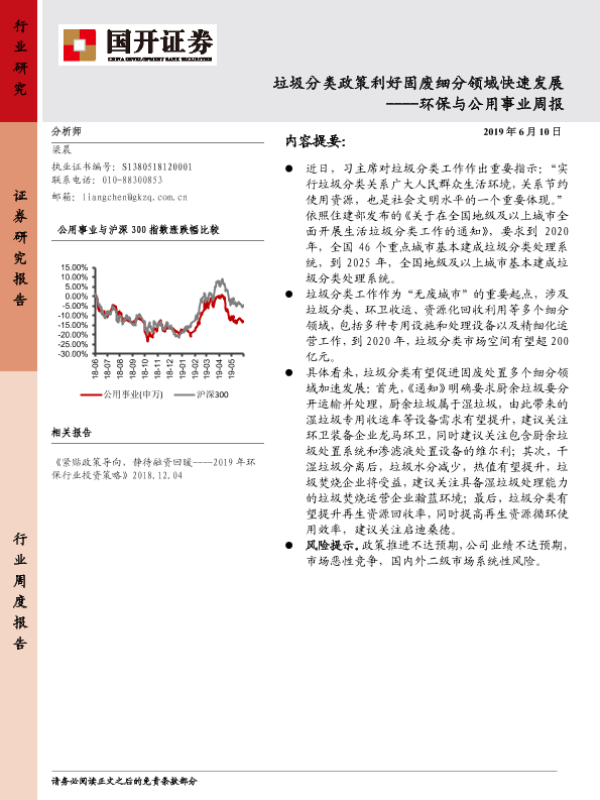 【国开证券】【20190610】环保与公用事业周报:垃圾分类政策利好固废细分领域快速发展-8页
