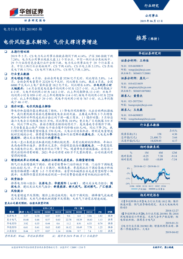 【华创证券】【20190612】电力行业月报:电价风险基本解除,气价支撑消费增速-26页