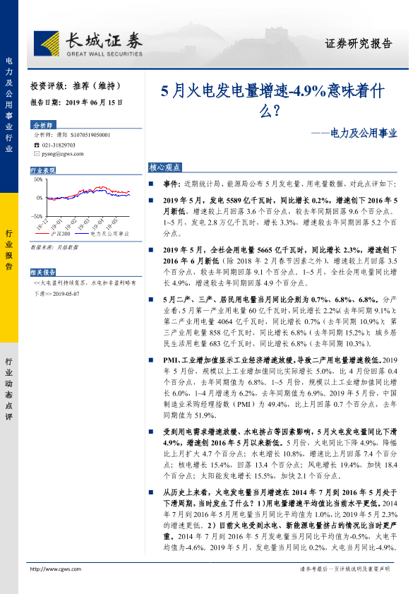 【长城证券】【20190615】5月火电发电量增速-4.9%意味着什么-6页