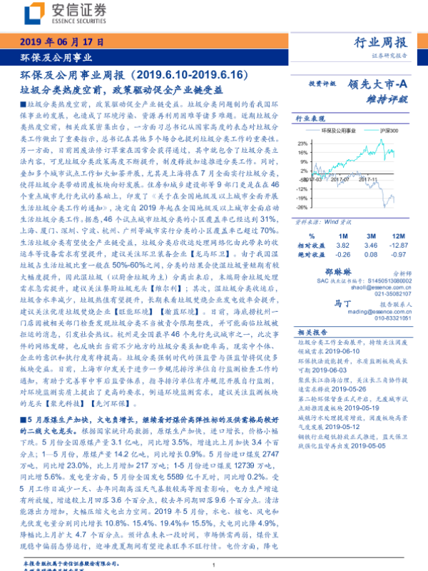 【安信证券】【20190617】环保及公用事业周报:垃圾分类热度空前,政策驱动促全产业链受益-16页