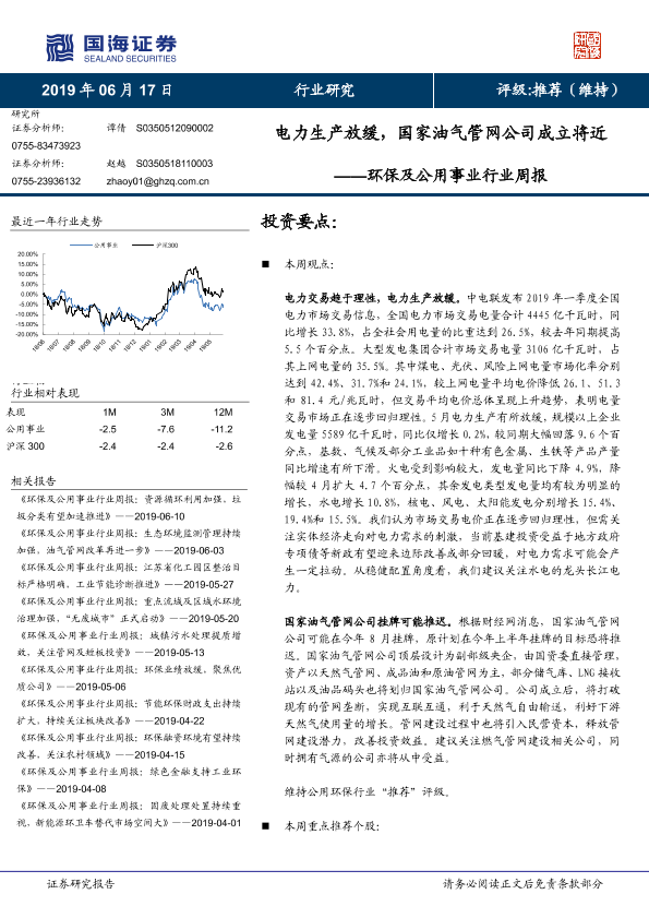 【国海证券】【20190617】电力生产放缓,国家油气管网公司成立将近-10页