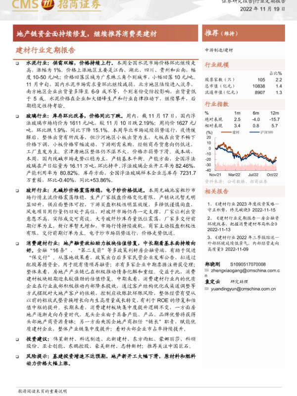 【海通证券】【20221119】建材行业定期报告:地产链资金面持续修复,继续推荐消费类建材-22页