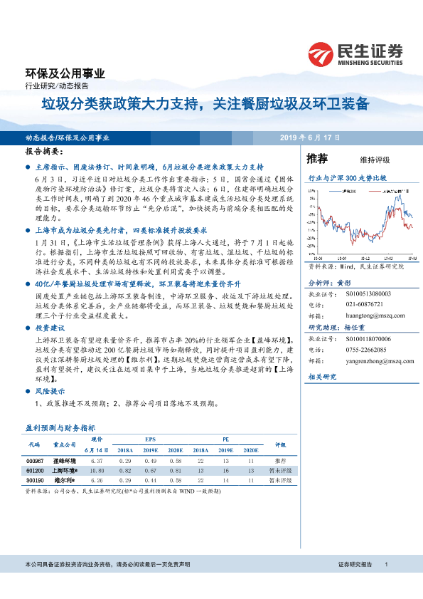 【民生证券】【20190617】环保及公用事业行业研究:垃圾分类获政策大力支持,关注餐厨垃圾及环卫装备-10页