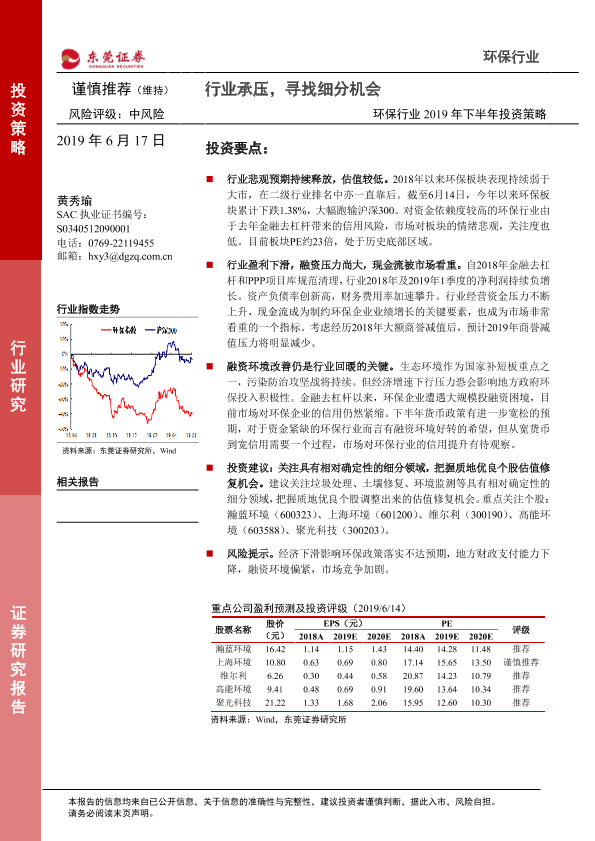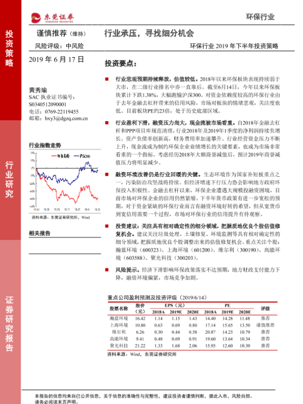 【东莞证券】【20190617】环保行业2019年下半年投资策略:行业承压,寻找细分机会-19页