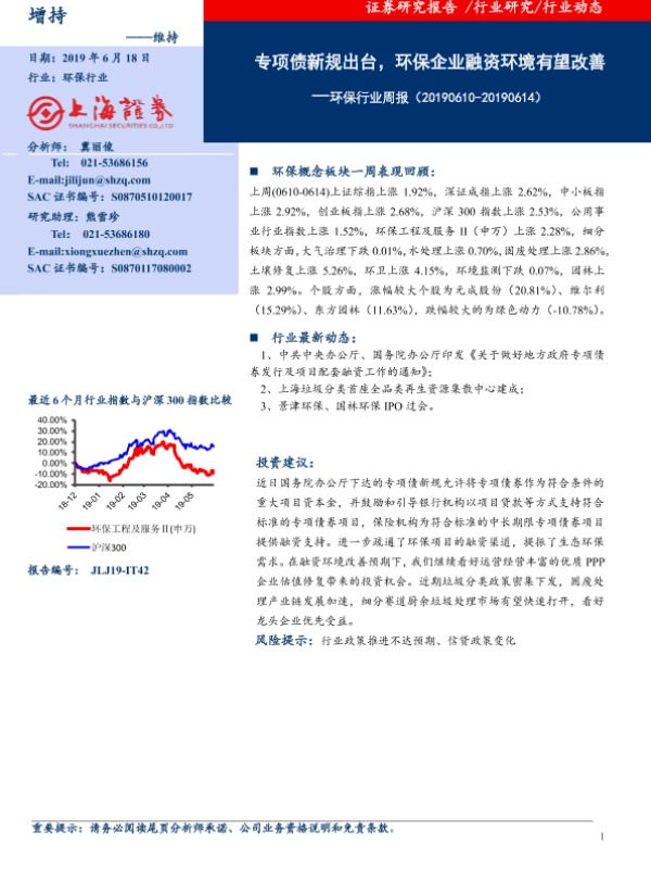 【上海证券】【20190618】环保行业周报:专项债新规出台,环保企业融资环境有望改善-7页
