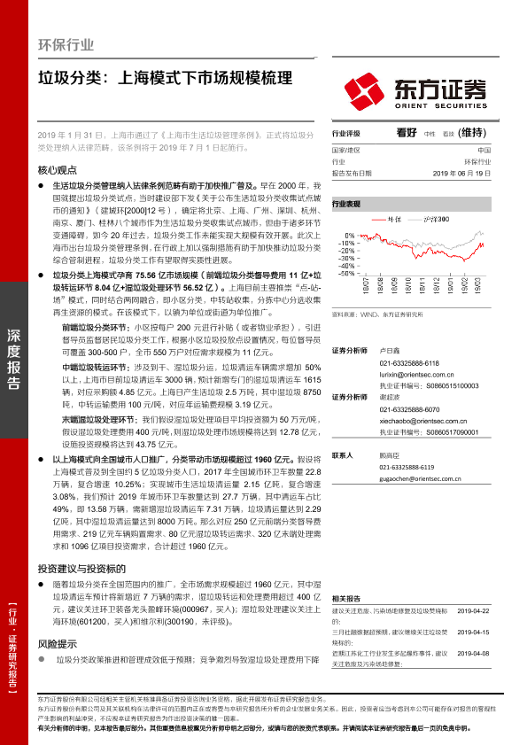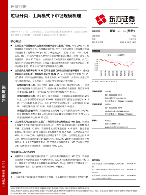 【东方证券】【20190619】垃圾分类:上海模式下市场规模梳理-14页