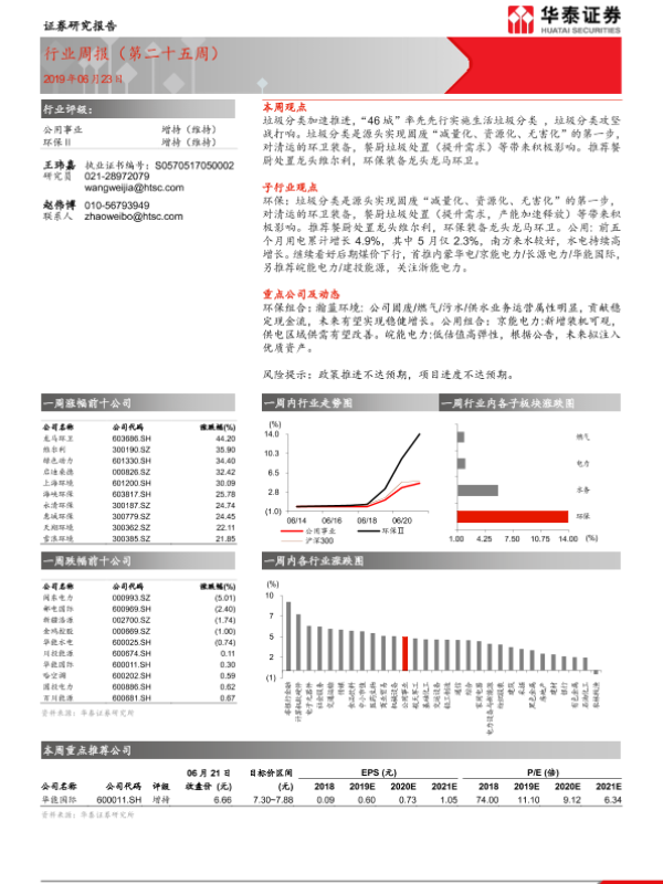 【华泰证券】【20190623】环保行业周报(第二十五周)-13页
