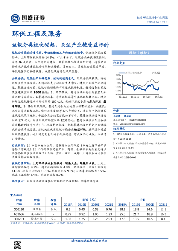 【国盛证券】【20190623】环保工程及服务行业周报:垃圾分类板块崛起,关注产业链受益标的-28页