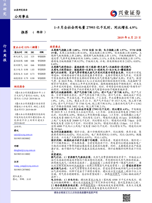 兴业证券 电力热力燃气水生产 2019年 PDF 977.66 KB