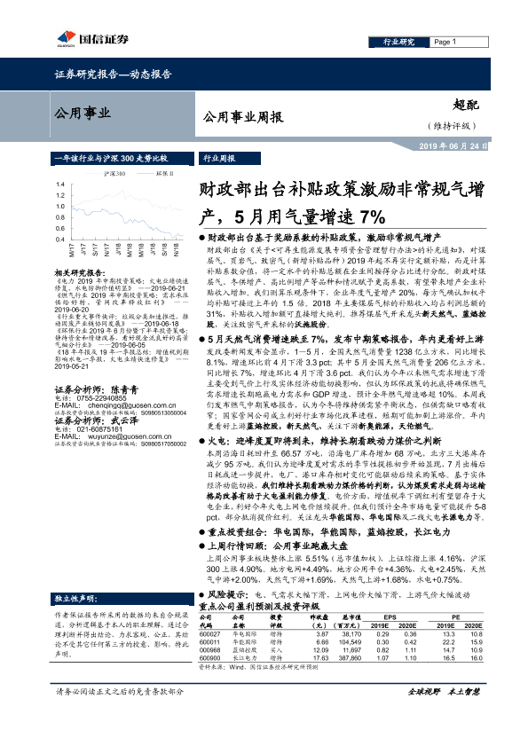【国信证券】【20190624】财政部出台补贴政策激励非常规气增产,5月用气量增速7%-10页