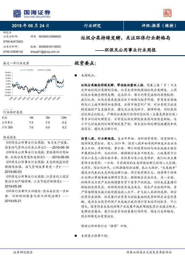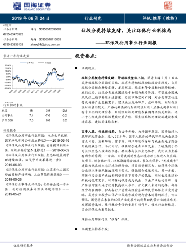 【国海证券】【20190624】环保及公用事业行业周报:垃圾分类持续发酵,关注环保行业新格局-10页