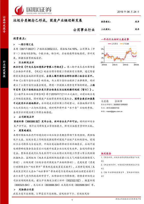 【国联证券】【20190624】公用事业行业:垃圾分类概念已形成,固废产业链迎新发展-12页