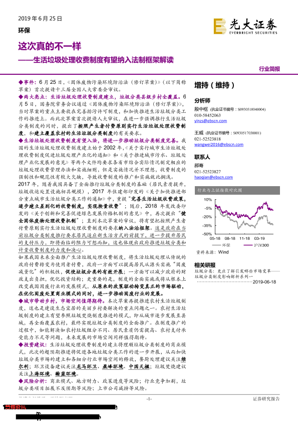 【光大证券】【20190625】生活垃圾处理收费制度有望纳入法制框架解读-2页