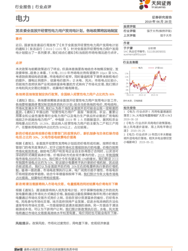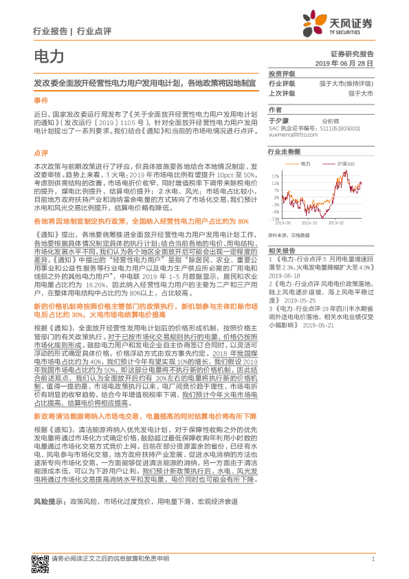 【天风证券】【20190628】电力行业点评:发改委全面放开经营性电力用户发用电计划-2页
