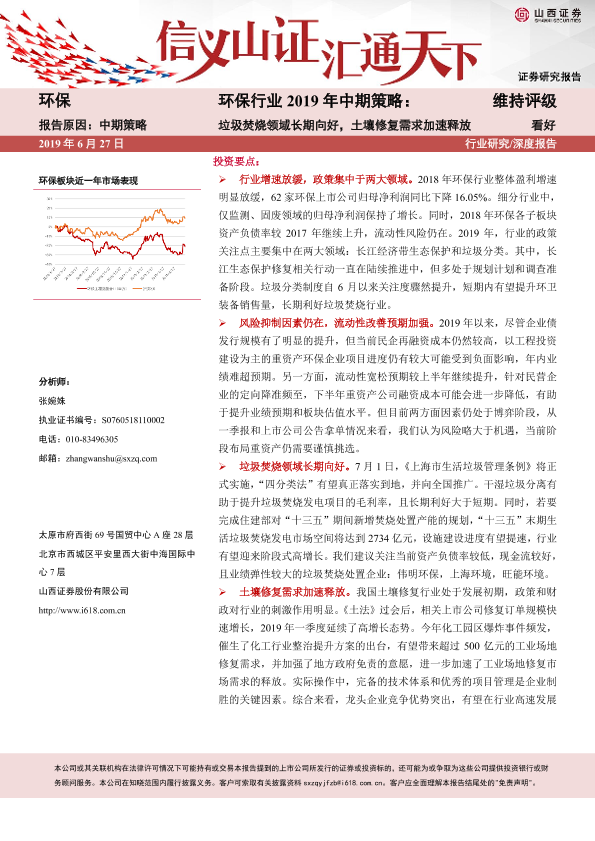 【山西证券】【20190627】环保行业2019年中期策略:垃圾焚烧领域长期向好,土壤修复需求加速释放-38页