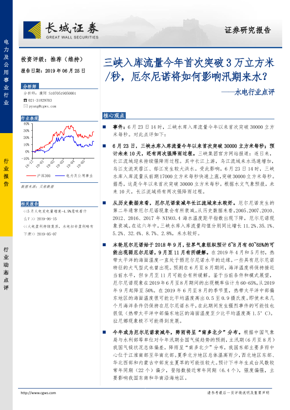 【长城证券】【20190625】三峡入库流量今年首次突破3万立方米秒,厄尔尼诺将如何影响汛期来水?-8页