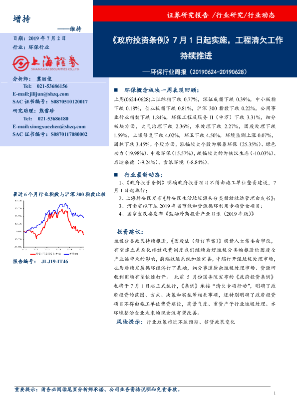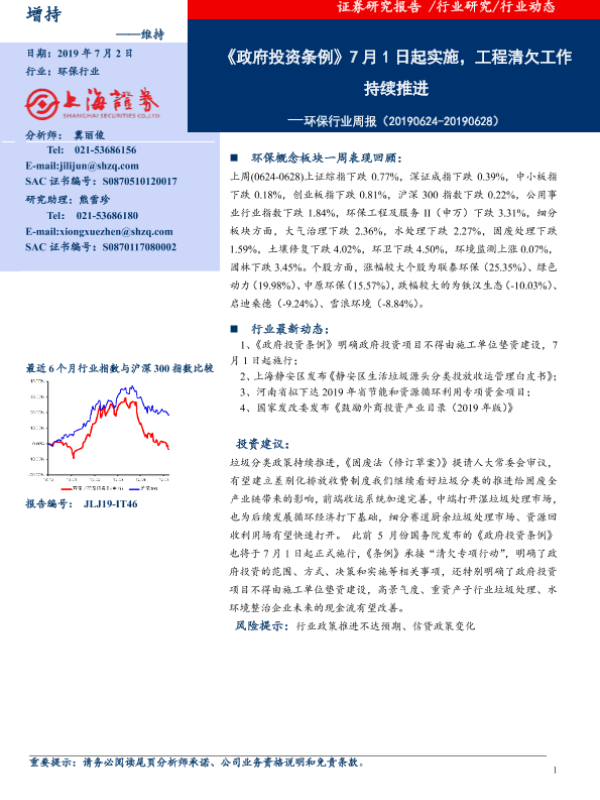【上海证券】【20190702】环保行业周报:《政府投资条例》7月1日起实施,工程清欠工作持续推进-7页