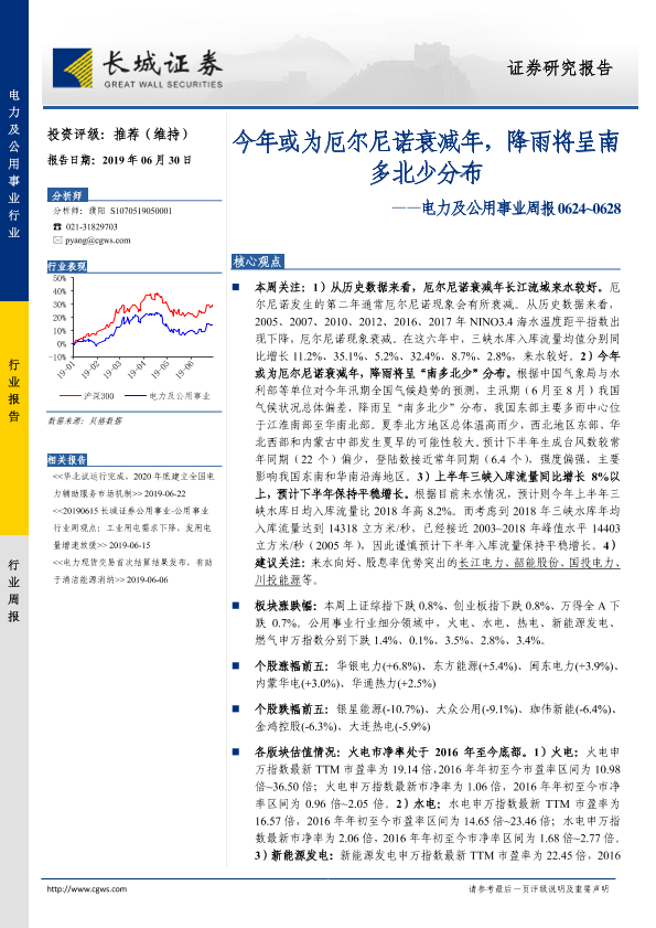 长城证券 电力热力燃气水生产 2019年 PDF 1.23 MB