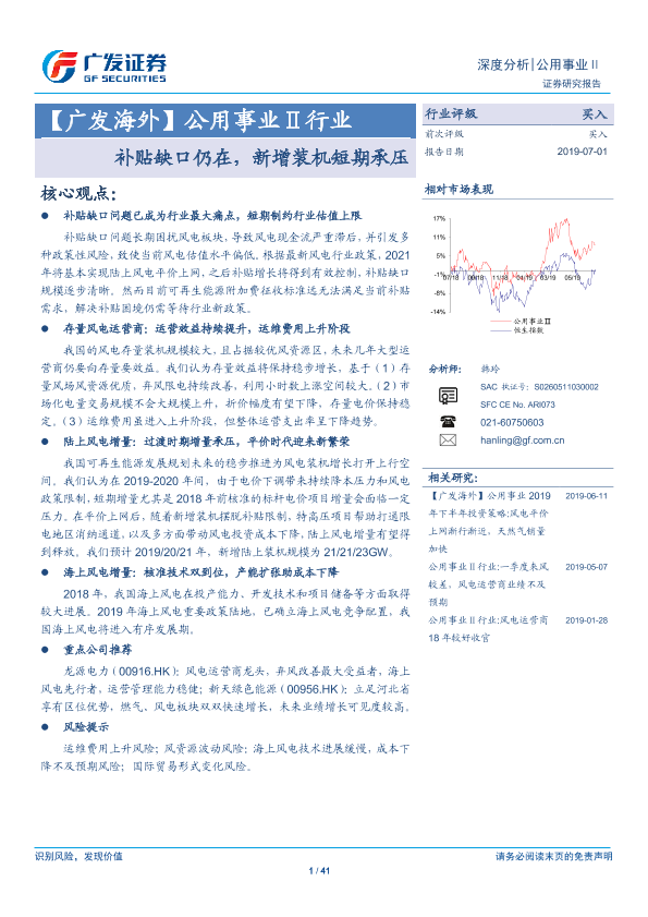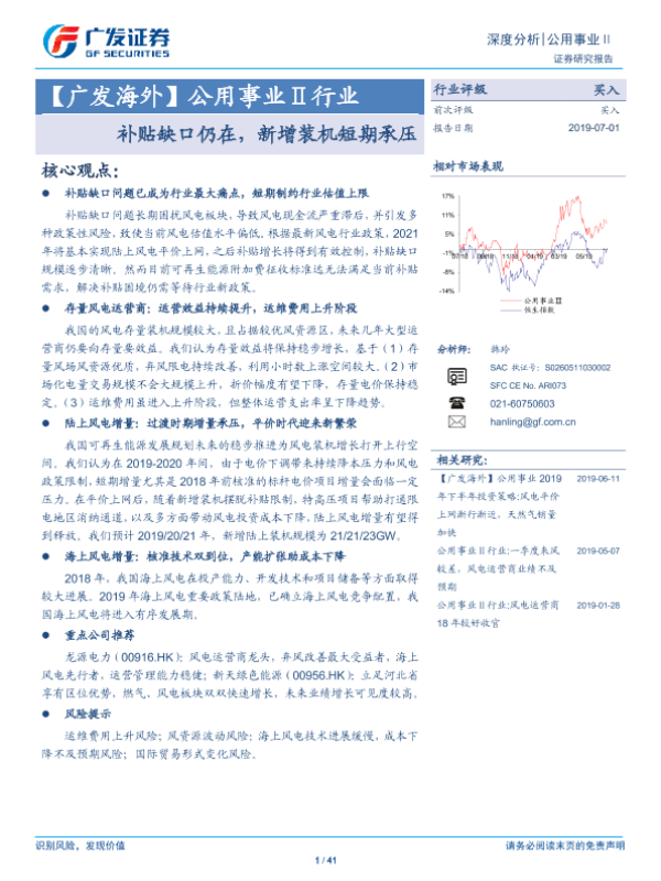 【广发证券】【20190701】公用事业Ⅱ行业:补贴缺口仍在,新增装机短期承压-41页