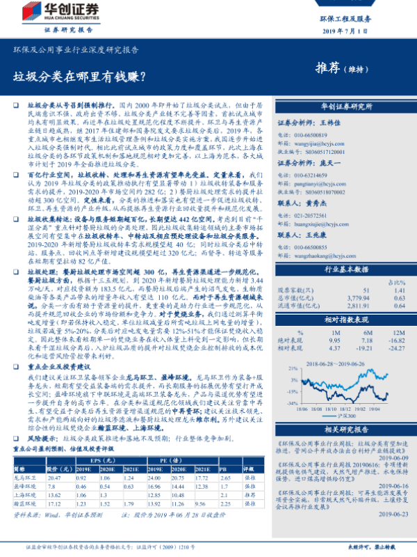 【华创证券】【20190701】环保及公用事业行业深度研究报告:垃圾分类在哪里有钱赚?-28页