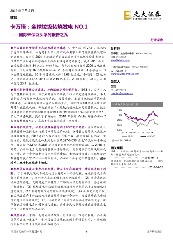 CVA 卡万塔 垃圾焚烧发电 市场化定价 环保巨头