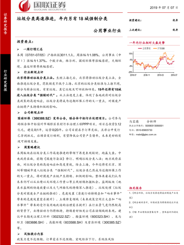 【国联证券】【20190707】公用事业行业:垃圾分类高速推进,年内另有18城强制分类-11页