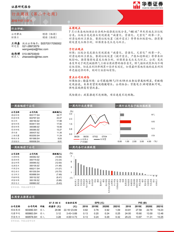 【华泰证券】【20190707】公用事业行业周报(第二十七周)-10页