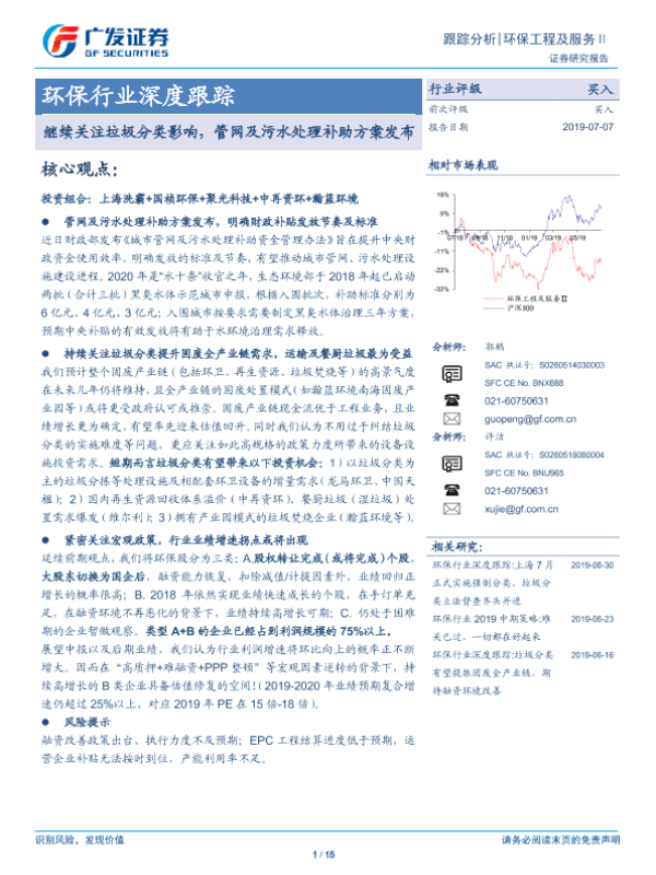 【广发证券】【20190707】继续关注垃圾分类影响,管网及污水处理补助方案发布-15页