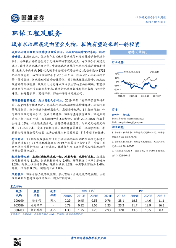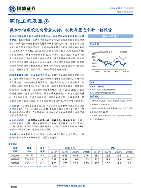 【国盛证券】【20190707】环保工程及服务行业周报:城市水治理获定向资金支持,板块有望迎来新一轮投资-12页