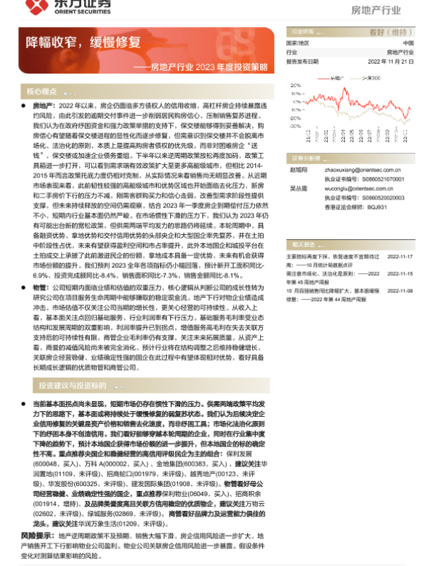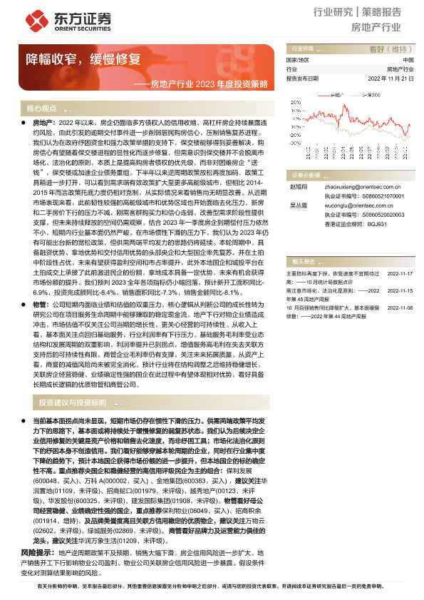 【东方证券】【20221121】房地产行业2023年度投资策略:降幅收窄,缓慢修复-45页