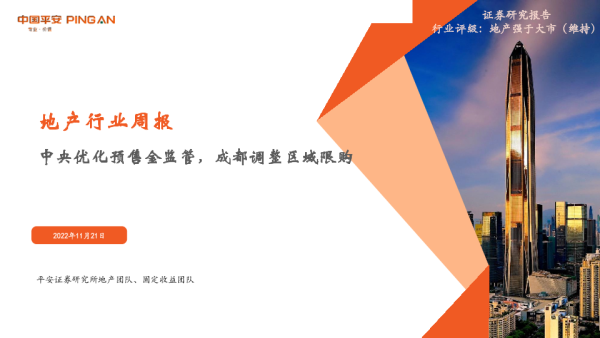 【中国平安】【20221121】房地产行业周报:中央优化预售金监管,成都调整区域限购-20页
