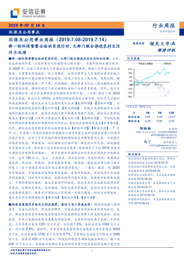 【安信证券】【20190714】新一轮环保督察全面动员进行时,九部门联合推进农村生活污水处理-20页