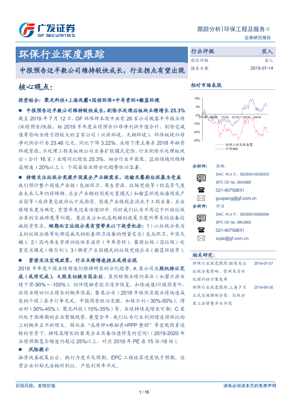 【广发证券】【20190714】环保行业深度跟踪:中报预告近半数公司维持较快成长,行业拐点有望出现-15页