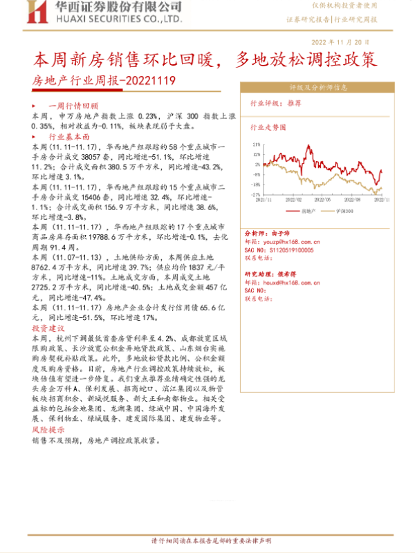 【华西证券】【20221120】房地产行业周报:本周新房销售环比回暖,多地放松调控政策-23页