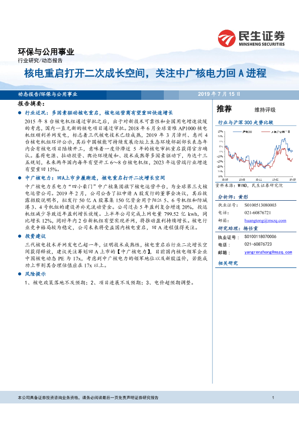 【民生证券】【20190715】核电重启打开二次成长空间,关注中广核电力回A进程-10页